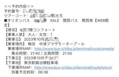 預約完成後付好錢,巴士公司就會給你註冊時使用的郵箱裡發送一封含有巴士公司名稱、巴士名稱、搭乘和到達時間、車站位置的郵件。