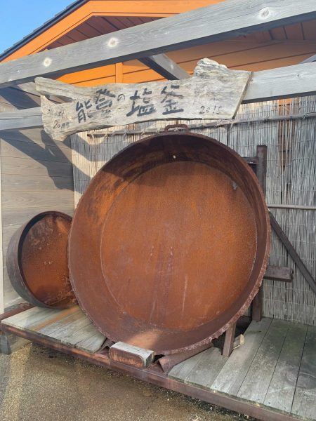 這裡雖然是道之驛(日本設置在公路旁、可供休息和對當地進行宣傳的設施),同時也是一座博物館。日本唯一的「揚浜式」製鹽法就在能登半島,而這裡則是既能夠學到這種製鹽方法的歷史,並且還能實際體驗製鹽的地方。從鹽田邊的入口下到日本海中,挑起滿滿的兩桶海水後,將海水潑灑到鹽田中。海水流過乾燥的沙子,留下鹽巴的結晶,再用大鍋煮上六七個小時,這樣反反復復得到的結果就是我們平常吃的鹽。