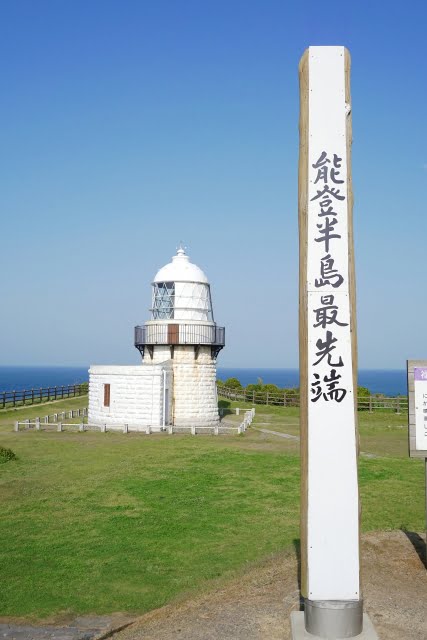 禄剛崎燈塔位於能登半島的最北端,通稱“狼煙燈塔”。清晨可以在這裡看到朝陽從海上升起,傍晚則可以看到夕陽沉入海面。這座白色的禄剛崎燈塔建於明治年間,距今已有一百三十多年的歷史,也曾經入選「日本燈塔五十選」。據說這裡是整個日本的中心點,有設置一個「日本列島以這裡為中心」的石碑,是一個非常好的打卡景點呢!