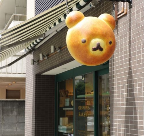這家店的主打是小熊。快看店鋪門口掛著的小熊頭像!這款麵包在店鋪裡就能買到一模一樣的喔!