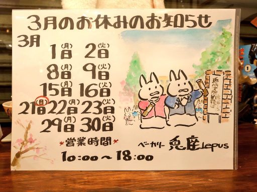 店主也是一個畫畫很厲害的人,他家每個月店主都會在部落格上通知定休日,居然都是用畫的而且每個月都不一樣耶!比如三月的這個: