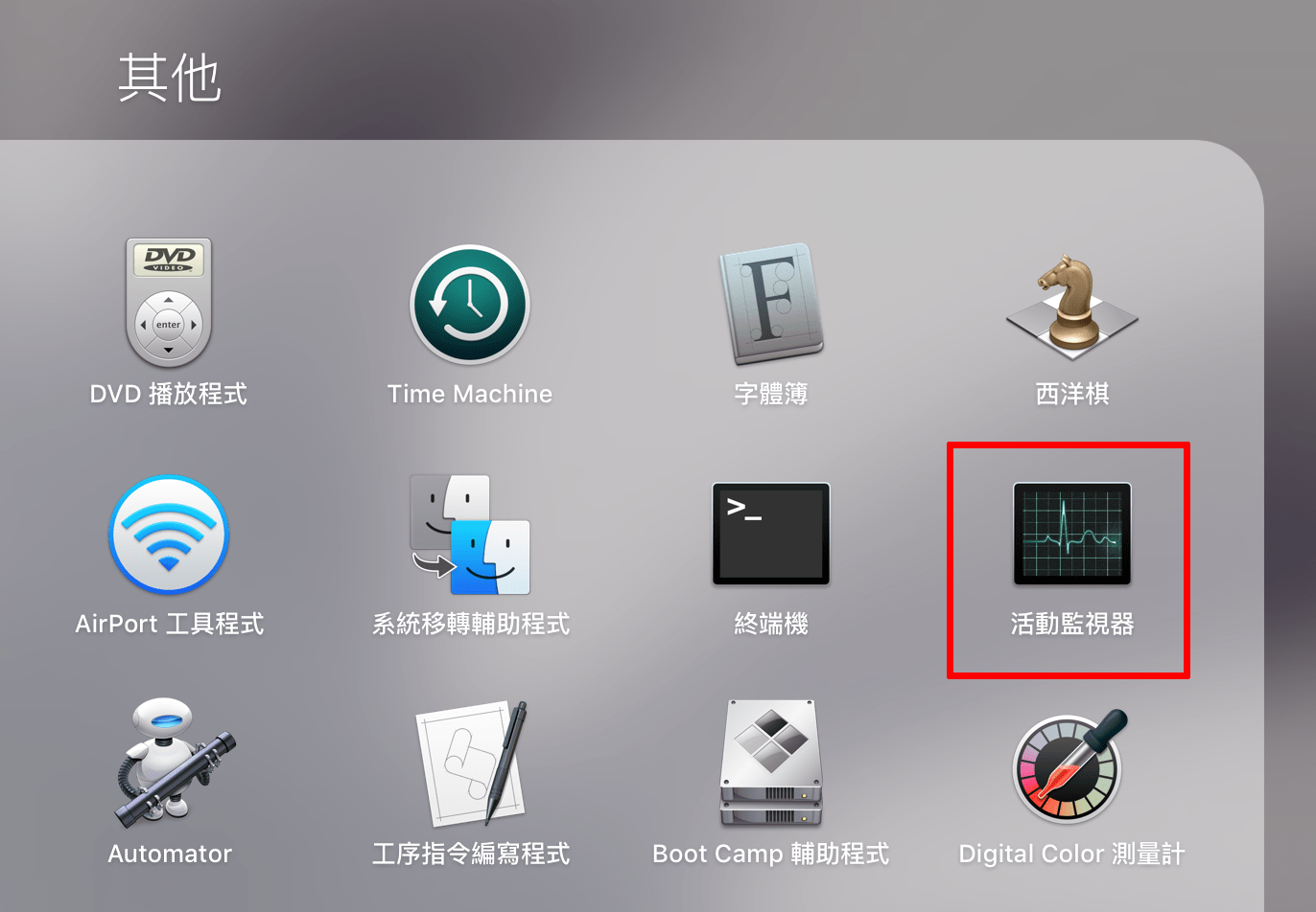 活動監視器被放在 Lauchpad 中的【其他】裡。圖標是上面這個樣子。