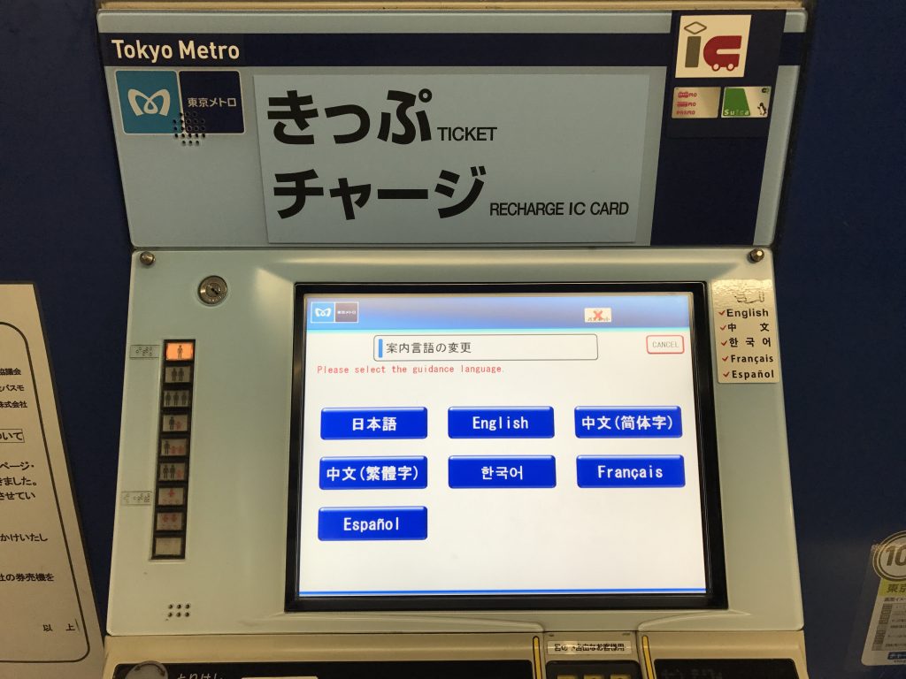為了給訪日遊客的地鐵購票體驗帶來更多的便利,東京地鐵(Tokyo Metro)全線的車站,目前都設置了7種語言對應的自動售票結和自動精算機。這7種語言包括:日文、英文、簡體中文、繁體中文、韓文、法文和西班牙文。泰文也將從明年春季起上線。