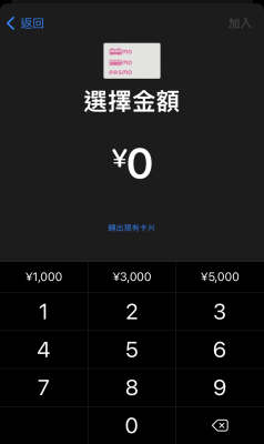 選擇加值金額,也可以使用數字鍵填寫,完成後點選右上角【新增】