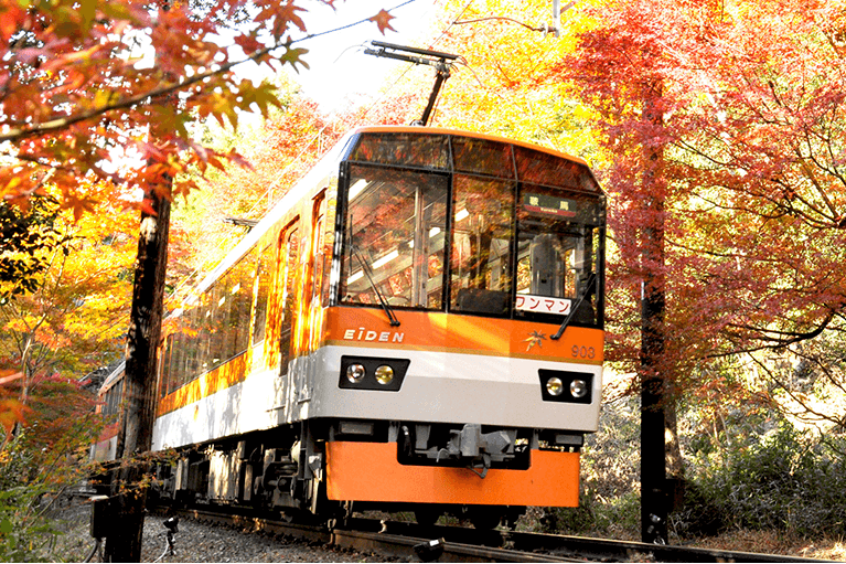 今年在日本的你有沒有去賞紅葉呢?在日本,一般比較推薦的賞紅葉的著名景點有東京的高尾山、六義園還有京都的清水寺。不過你知不知道有一個地方能讓你乘著火車從紅葉中穿過,近距離來欣賞紅葉的美呢?這個地方就是京都的紅葉隧道,能夠乘坐的火車是叡山電車。