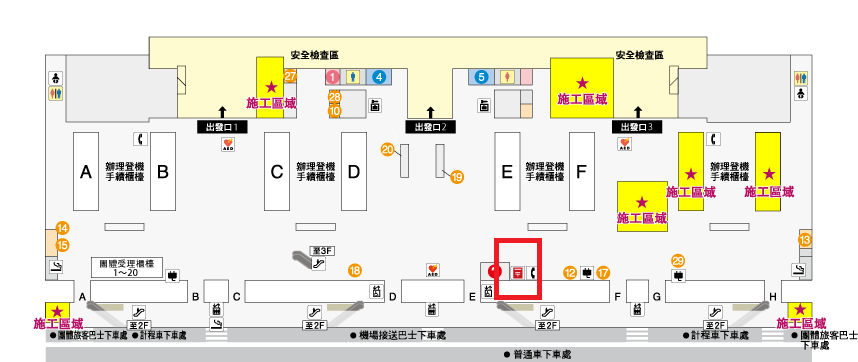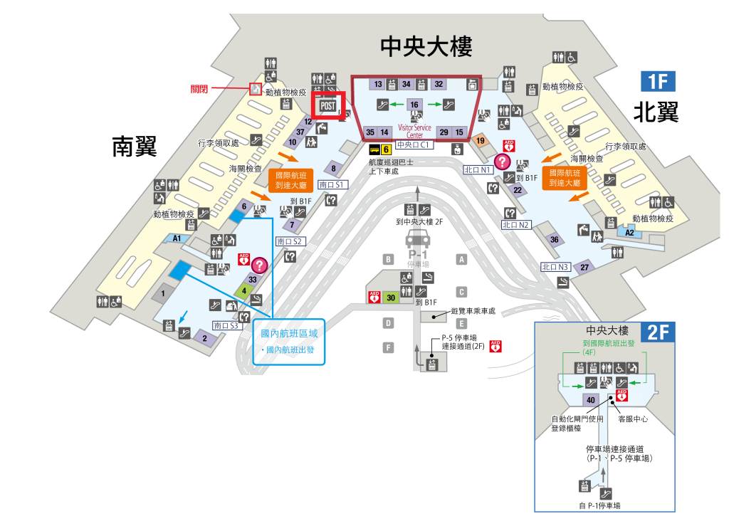 ※在3樓出發大廳的安檢入口前及1樓到達大廳裡設有郵筒。