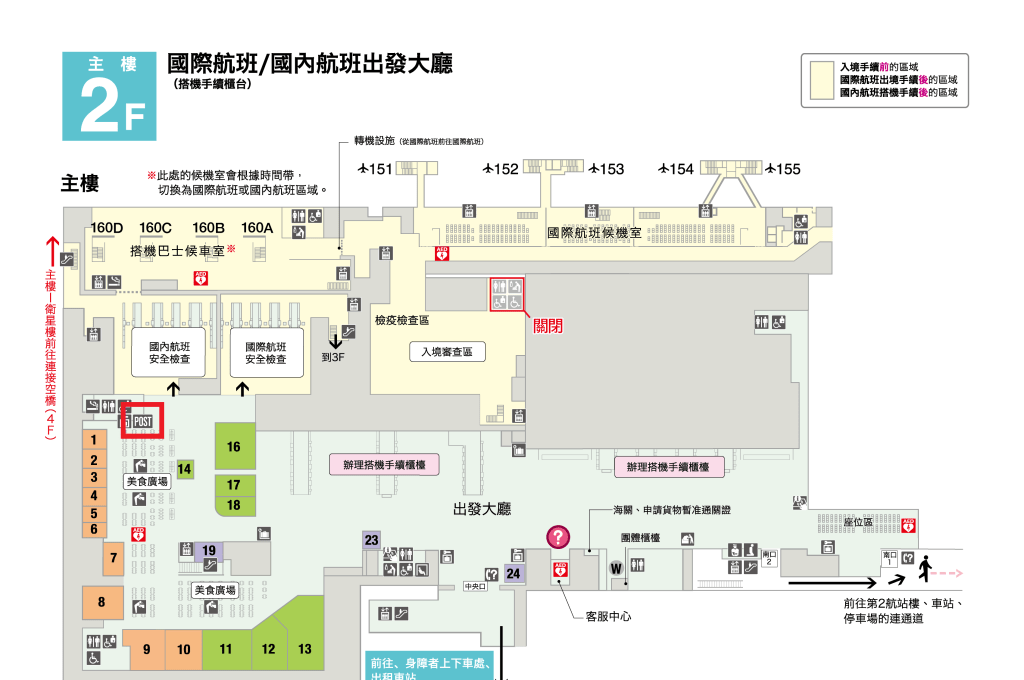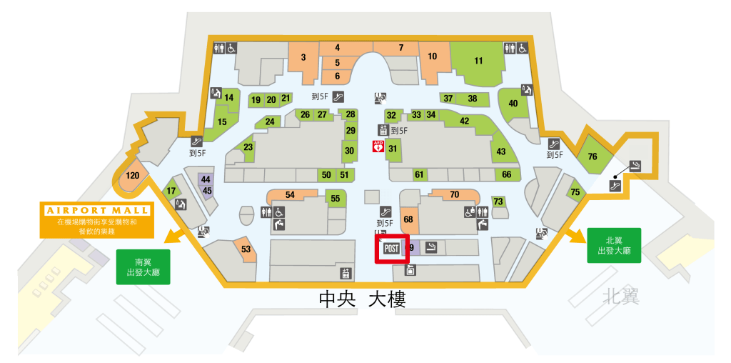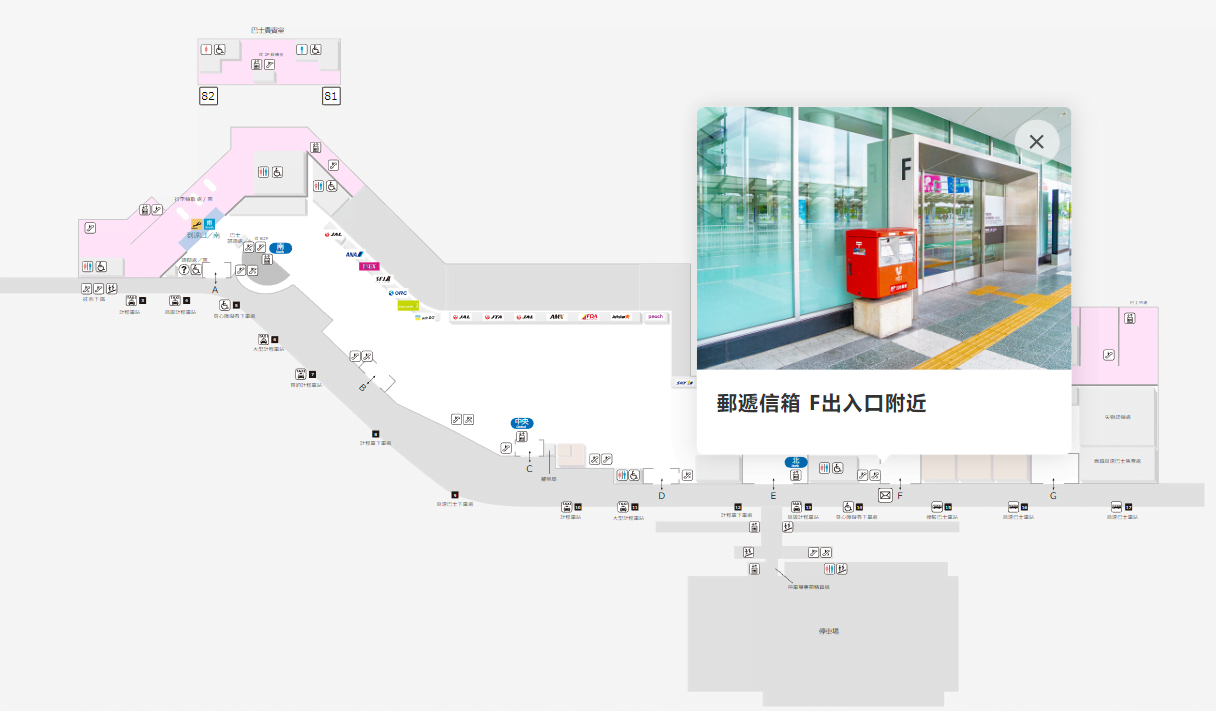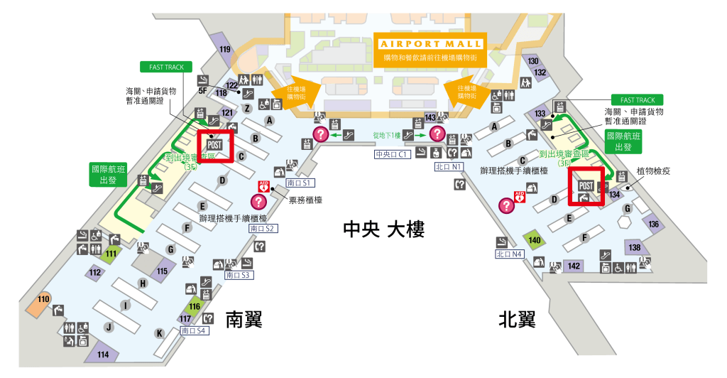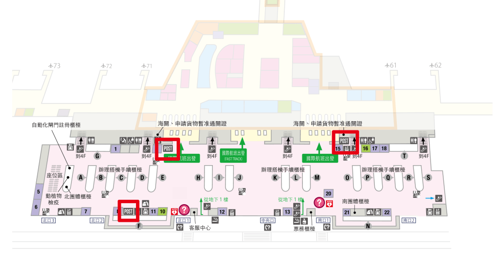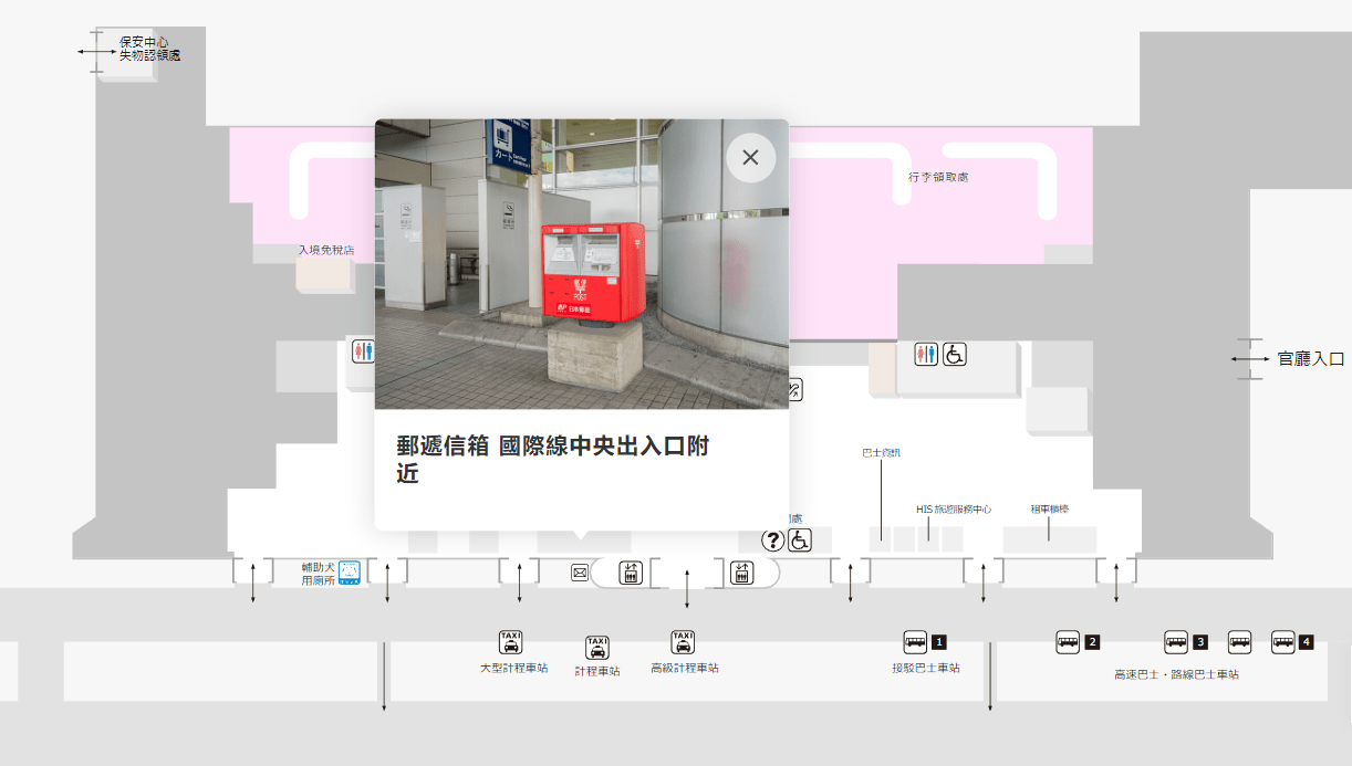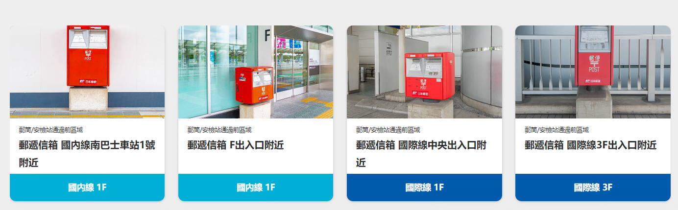 ※在4樓出發大廳的安檢入口前及1樓到達大廳裡設有郵筒。